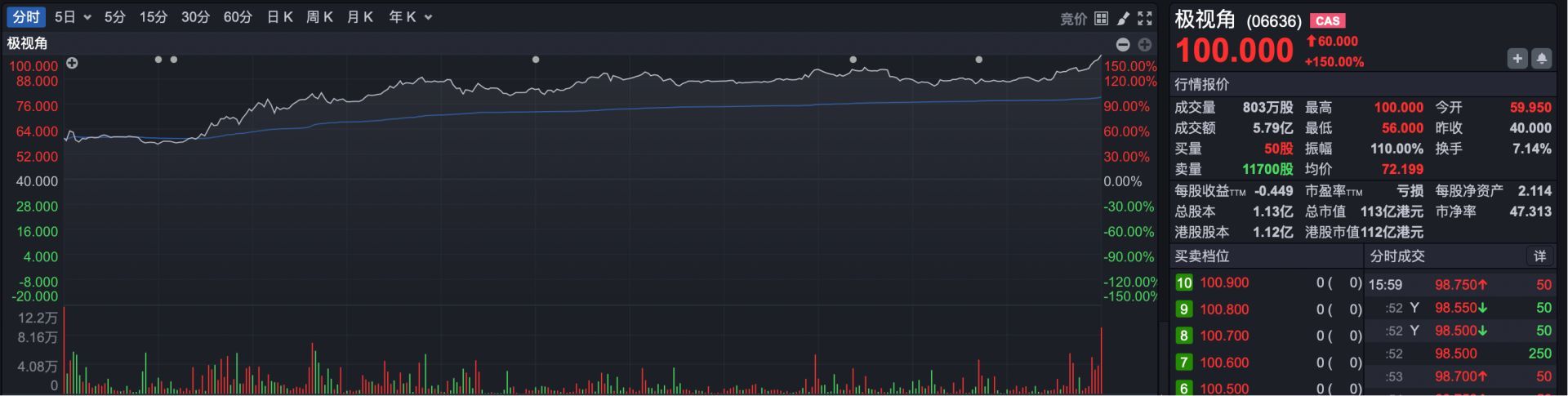 新股方面,今日四只新股同日上市,除了华沿机器人(HK01021)表现温和,仅上涨8%外,其余三只个股均大幅飙升。其中,极视角(HK06636)大涨150%,德适-B(HK02526)大涨111%,瀚天天成(HK02726)大涨35%。