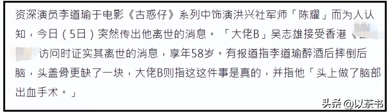 直到这时候,大众才猛然惊醒:那个躺在病床上孤单离世的58岁男人,竟然是《古惑仔》里那个只手遮天的洪兴军师——“耀哥”李道瑜。